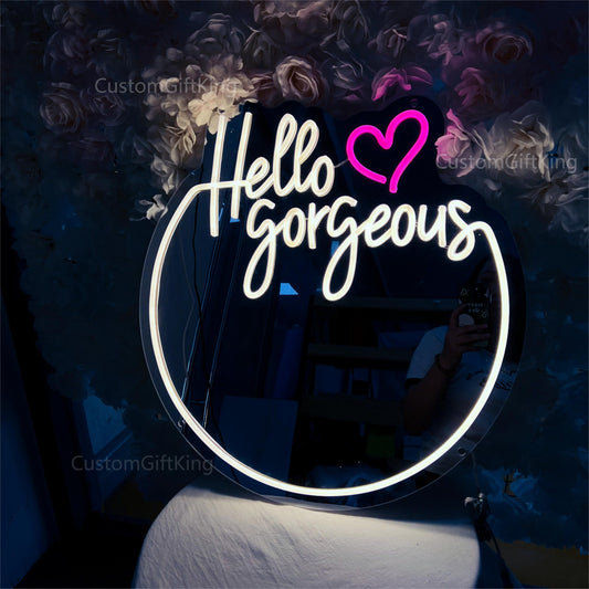 Hello Gorgeous Neon Sign Custom, Neon Sign Light Home Decor, Light up Mirror Wall Decor, Floor Neon Sign, Led Sigs Personalized Gifts