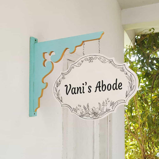 Hand-painted Hanging Name Plate - Teal Victorian Ivory Black Border