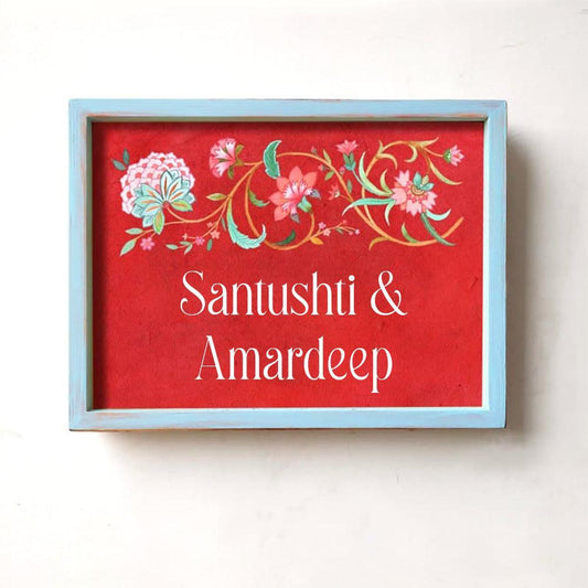 Veli - Handcrafted Framed Nameplate - Orange & Green