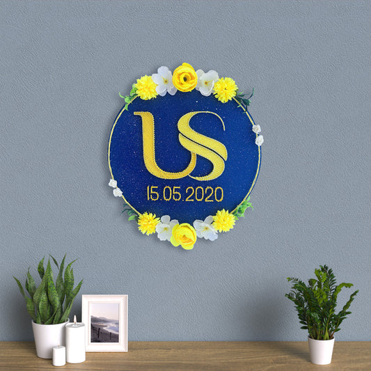 String Art Floral Wreath Personalized Wedding Couple Initials Nameplate