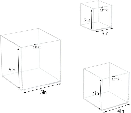 Acrylic Display Box, 3pc Clear Cube Riser, 3x3x3&4x4x4&5x5x5 inches, 5 Sided Museum Display Box Case for Collectibles