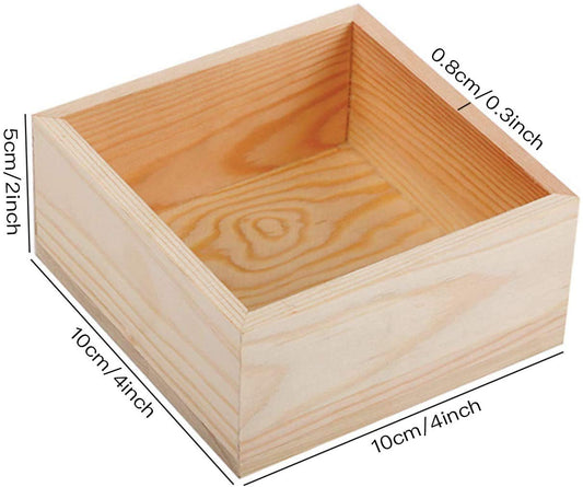 Wooden Box , Small Wood Square Storage Organizer Container Craft Box for Collectibles (4'' x 4'')