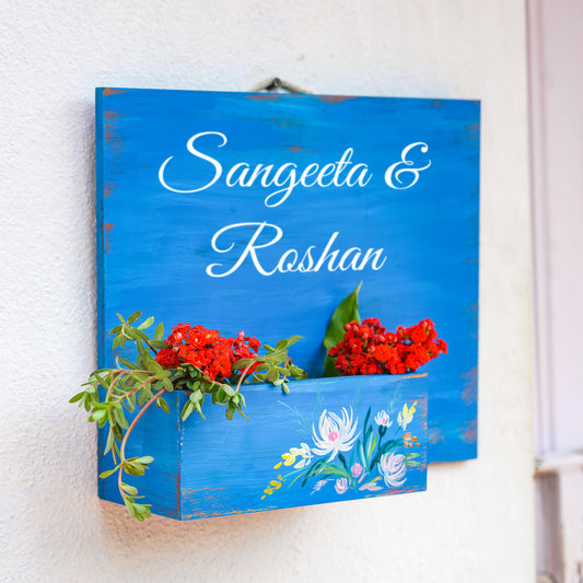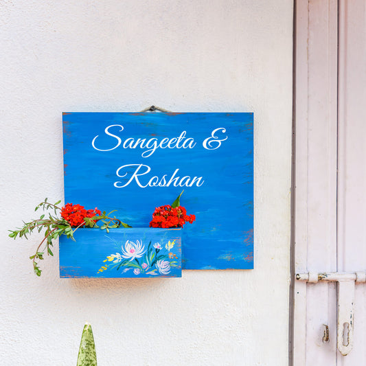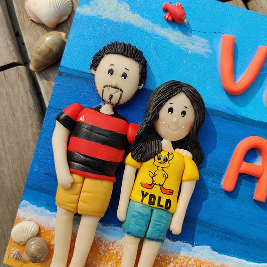 Handcrafted Beach Themed Personalized Clay Caricature Nameplate For Couples