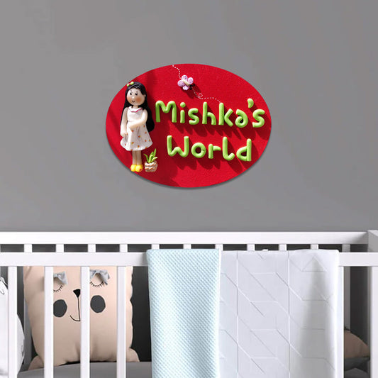 Handcrafted Personalized Clay Caricature Nameplate For Girls