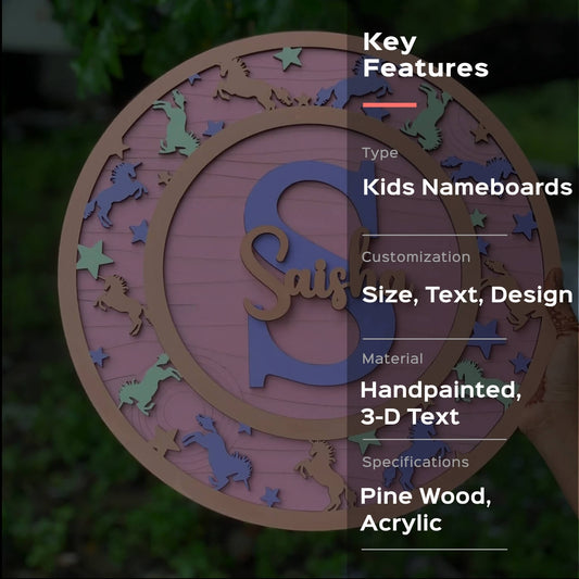 Painted Nameboard for Kids - Initial + Name with Unicorn Border