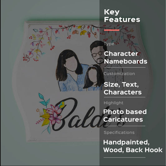 Personalized Photo Based Character Sketch Nameboard - Arched