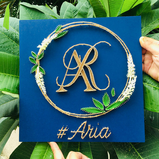 String Art Floral Wreath Personalized Wedding Couple Initials Nameplate
