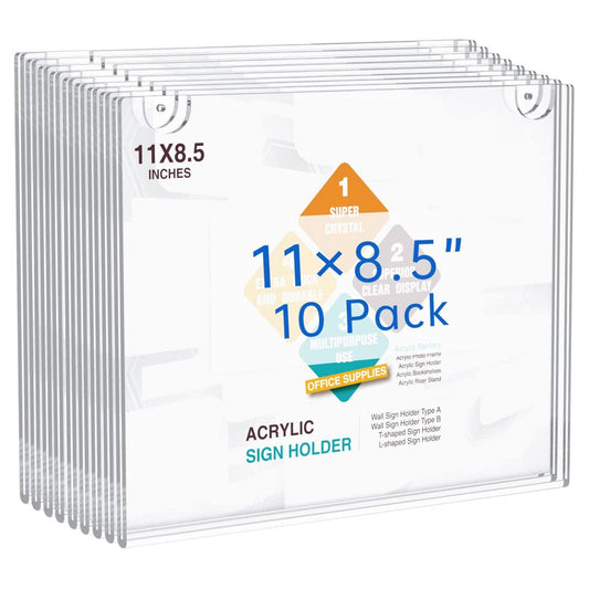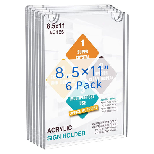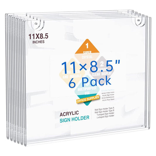 Acrylic Wall Sign Holder 8.5x11 Horizontal, Clear Plastic Picture Frames (6 Packs)