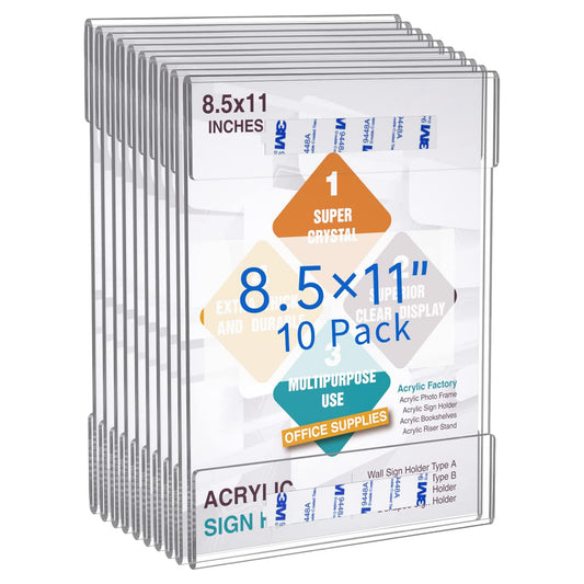 Acrylic Wall Sign Holder 8.5x11 Vertical, Clear Plastic Picture Frame