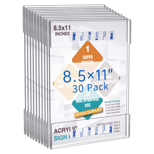 Wall Mount Acrylic Sign Holder with 3M Tape Adhesive for Office, Home, Store, Restaurant-No Drilling