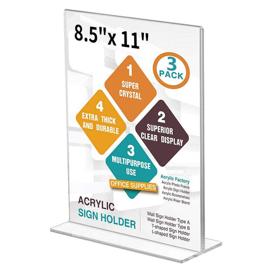 Acrylic Sign Holder 8.5 x 11 - T Shape Double Sided Table Top Display Stand