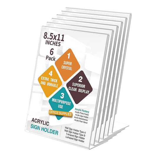 Acrylic Sign Holder 8.5 x 11 Inches Slanted Back, Clear Plastic Sign Holder Paper