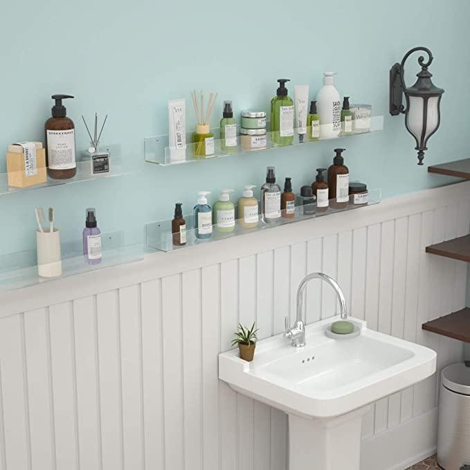 - High front lip-2 inch polished rounded front edge of wall mounted ledge shelf prevents books and cosmetics falling down