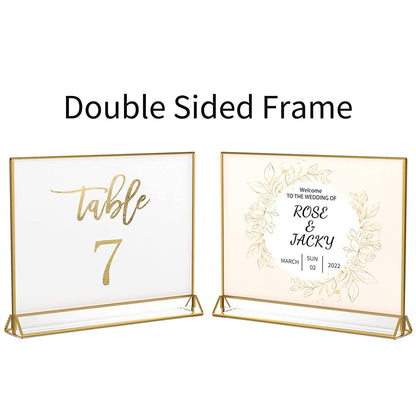 Acrylic Sign Holder with Gold Borders, Double Sided Table Menu Stands Picture Frames