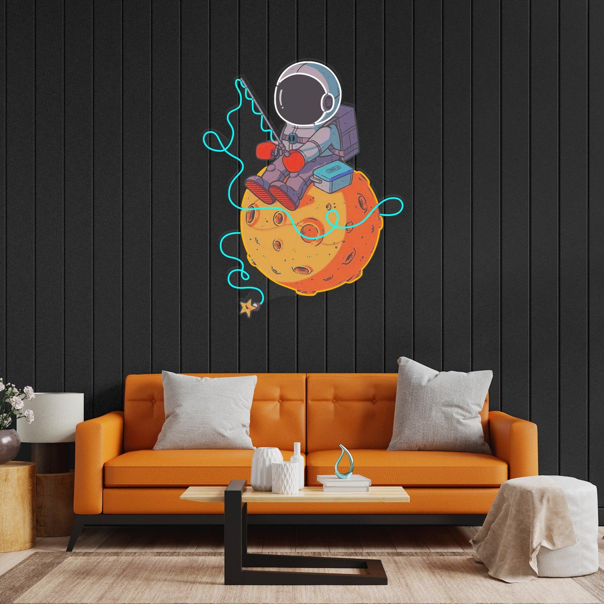 Astronaut Fishing Led Neon Acrylic Artwork can display at home room (living room, bedroom), office, gaming room, event,.....