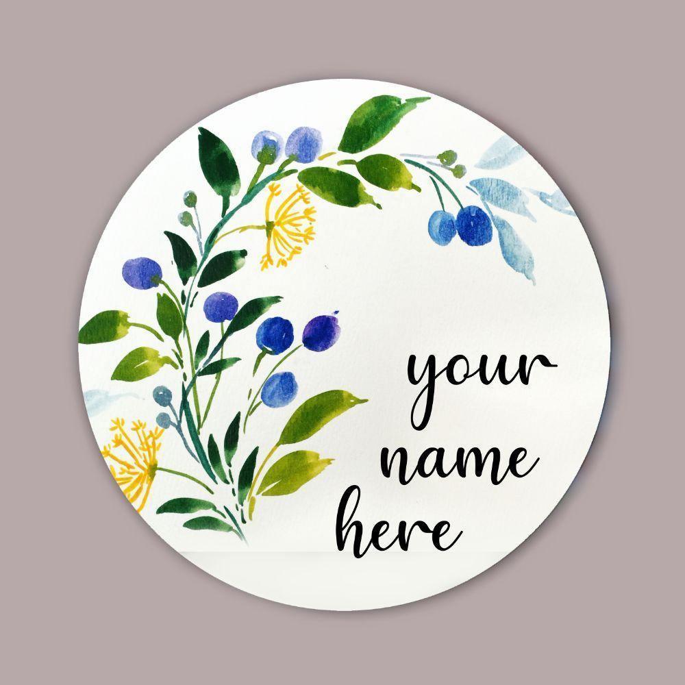 Berry - Hand-painted Floral Nameplate - Round