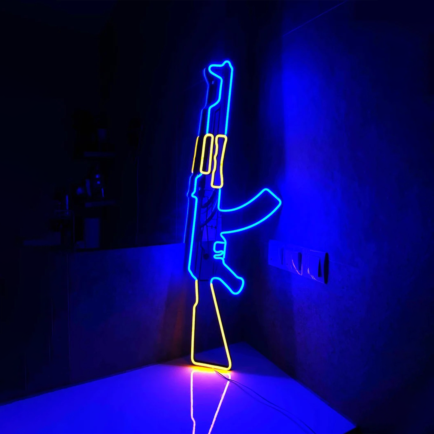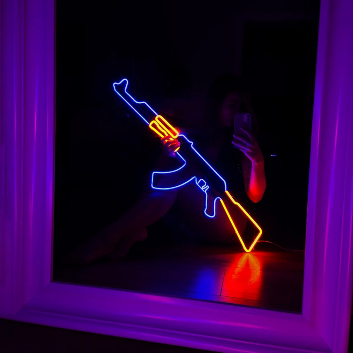 Gun Led Neon Signs AK 47 gift Pistol LED Neon Lights Gun Wall Art D������cor Neon Custom Desk light CS go neon rifle neon si High Quality Custom Made Neon Lights a perfect decoration for your Living Room, Bed Room, Kids Room, Office, Shop and more