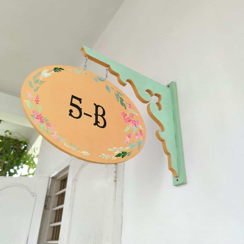 Add some character to your home with the hand-painted nameplate in Mint Green Oval Yellow. This two-sided, one-of-a-kind piece puts your name in the spotlight with a touch of creativity. Its dual-sided design means your name will be seen from every angle. This nameplate is handmade with love, ensuring a personal and playful touch that reflects your unique style. Grab yours now and give your space a pop of personality!