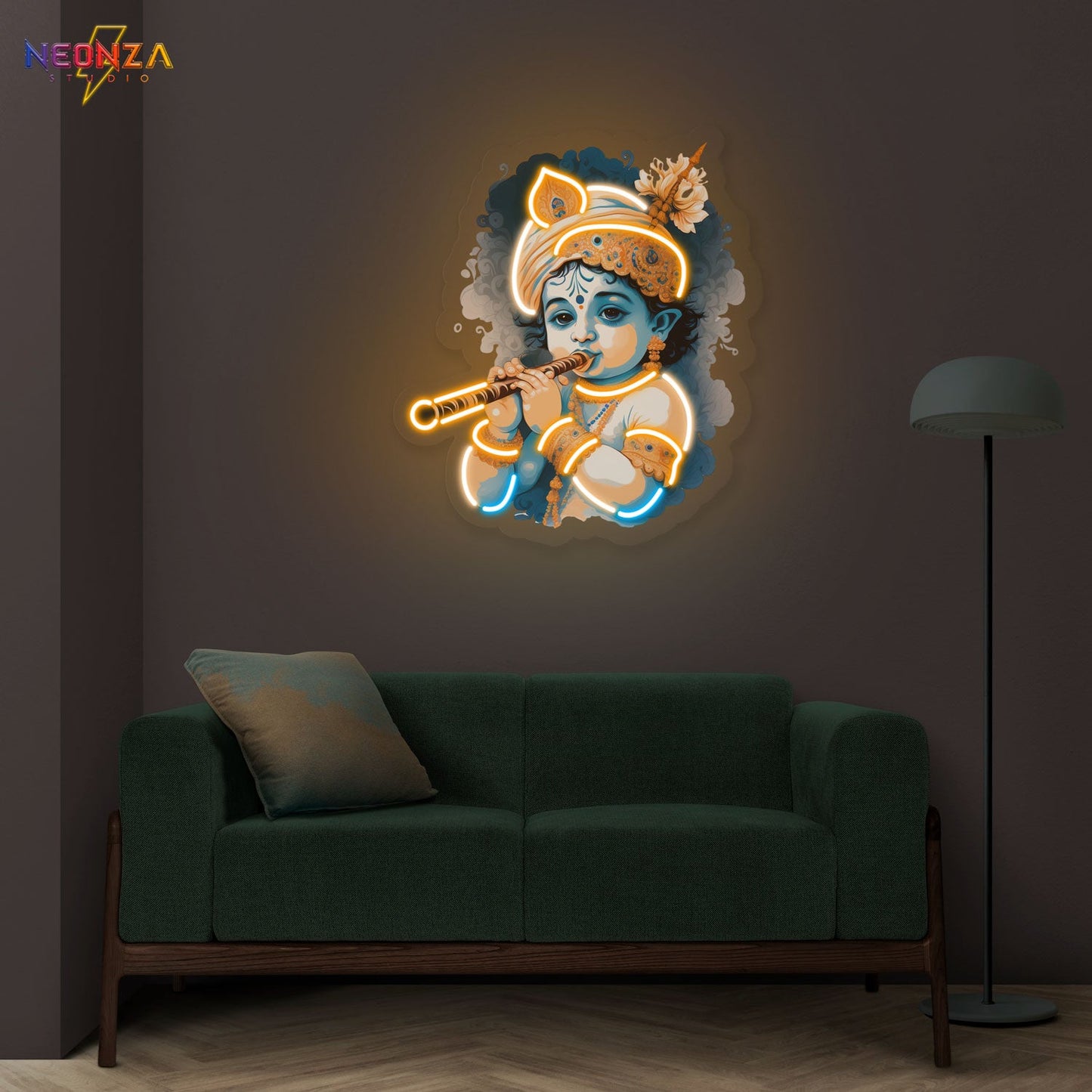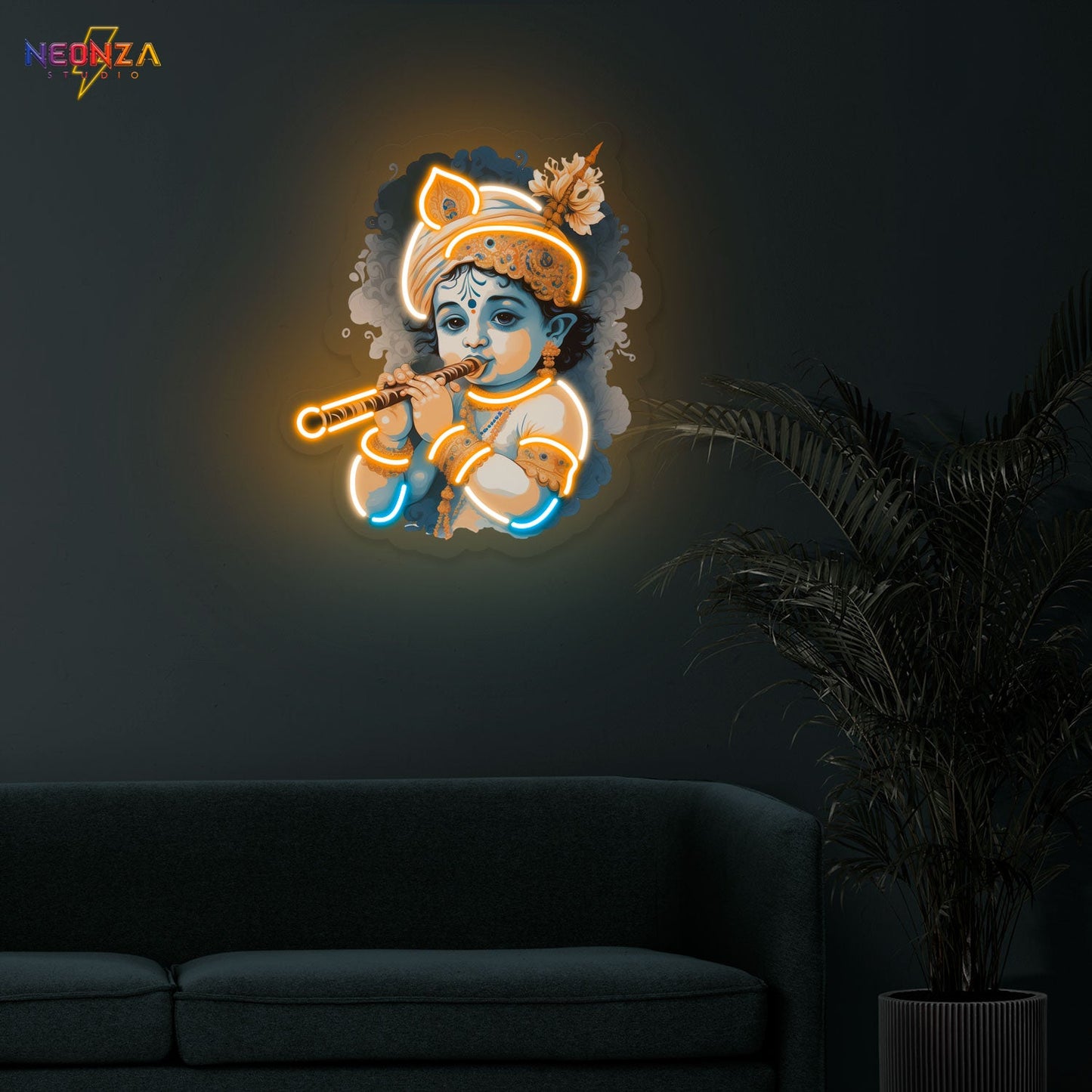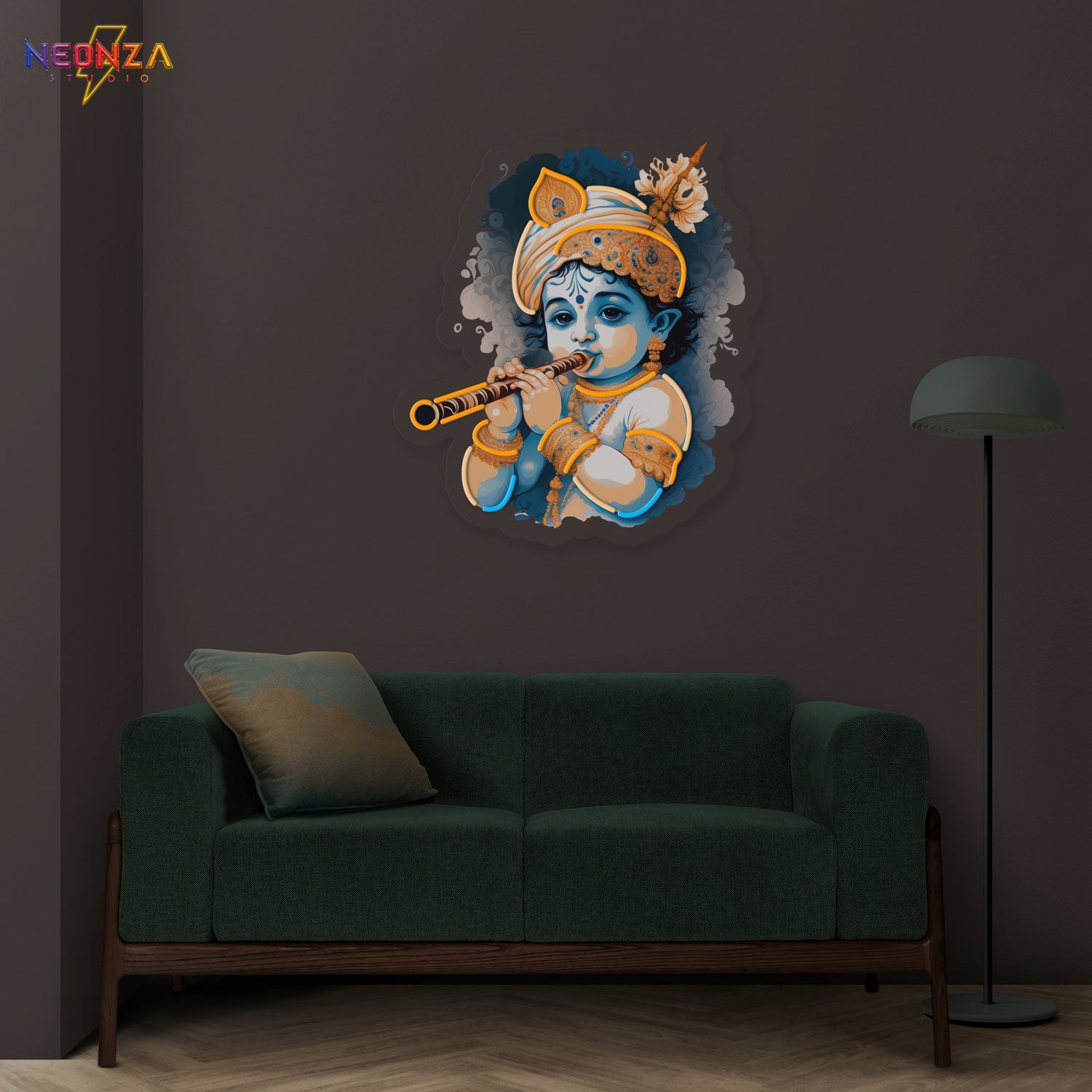 As an expert in the industry, I am proud to present the stunning Little Krishna neon sign artwork. Made with top-quality neon lights, this artwork will add a unique touch to any room. With its intricate design and bright illumination, it is sure to capture the attention of all who see it.