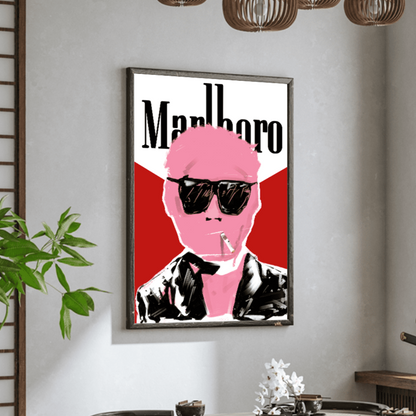 Bring a touch of bold, edgy style to your space with Marlboro. This canvas artwork features a striking design that blends pop culture with a rebellious attitude. The iconic Marlboro branding, paired with the vibrant pink silhouette and cool sunglasses, creates a statement piece that exudes confidence and a non-conformist vibe. Perfect for those who appreciate art with a bit of edge and irony.