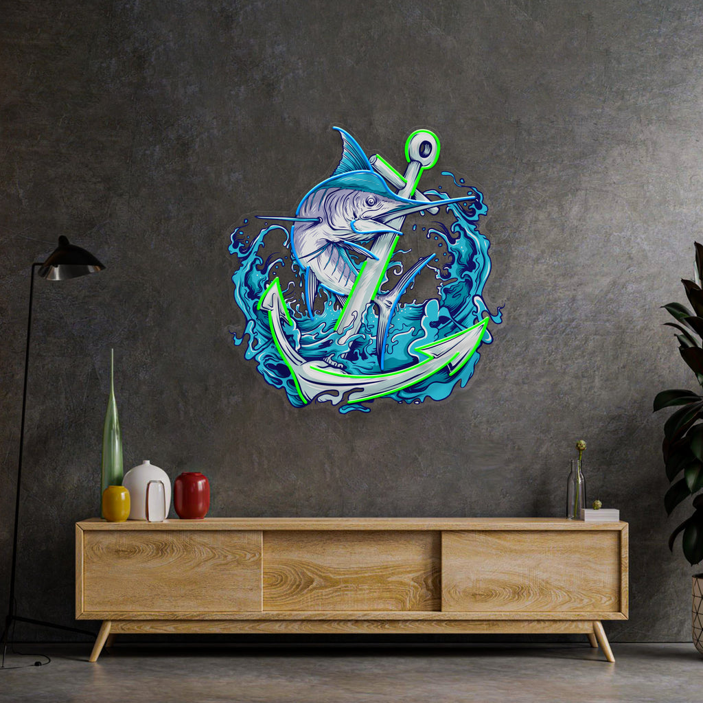 Marlin Fish with Anchor LED Neon Sign Light Pop Art