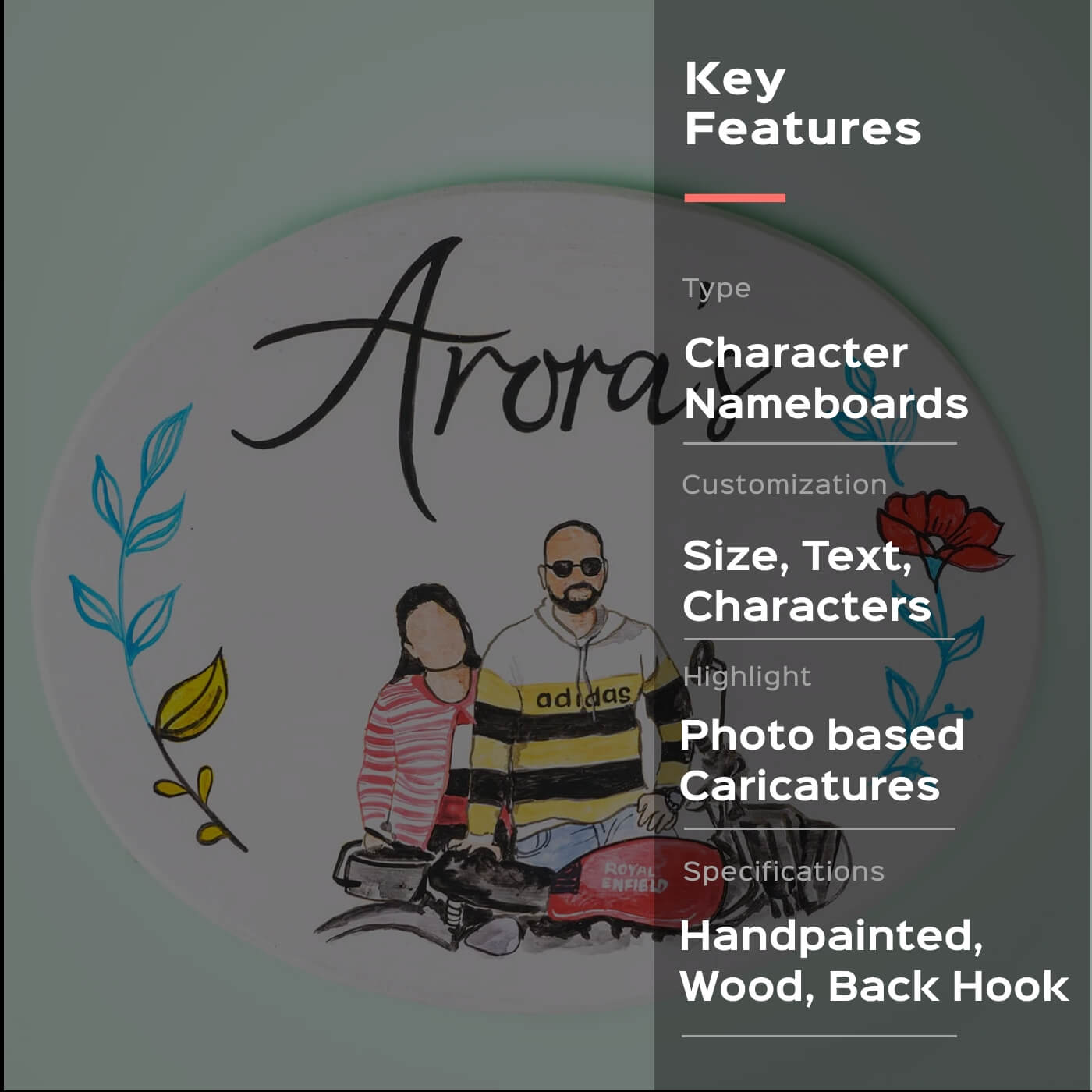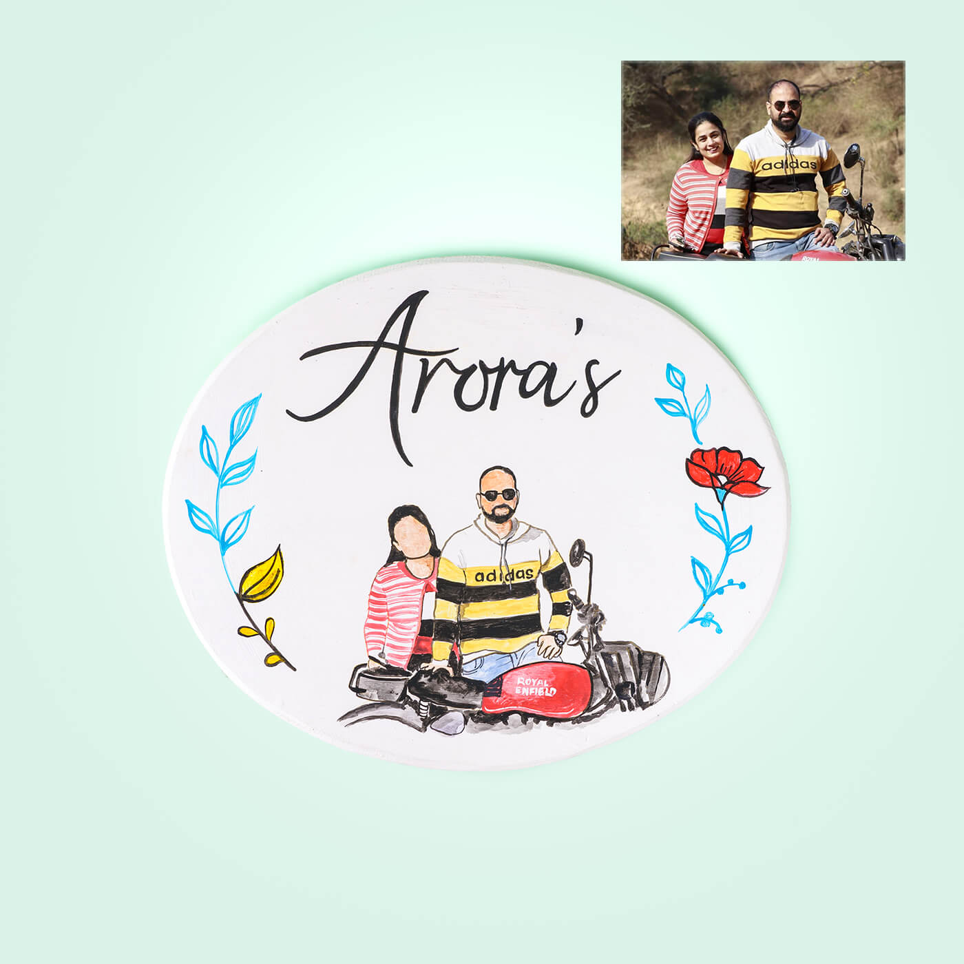 Personalized Photo Based Character Sketch Nameboard - Oval