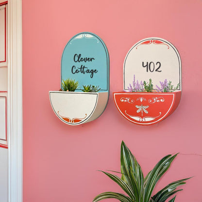 Round Planter Name Plate - Lovely Red & Teal