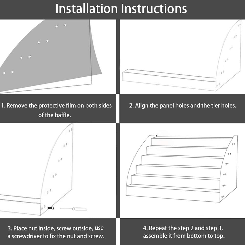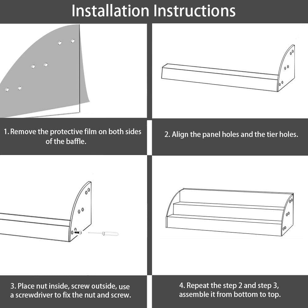 - ▲Easy to install: nail polish organizer comes with a small screwdriver, screws and nuts, when you get it, you need a simple installation. Please remove the protective film on both sides of the baffle before installation.