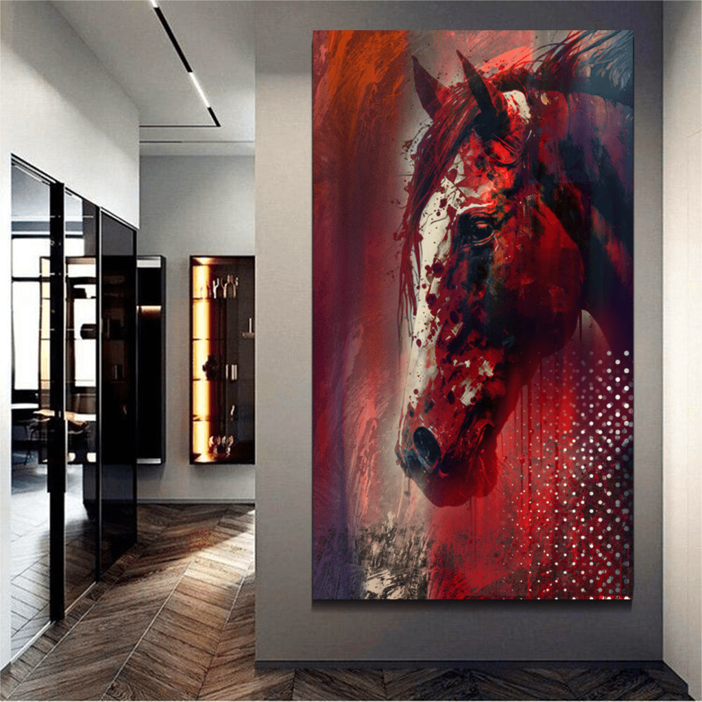 Dive into the world of art with our "The Untamed" canvas. This unique piece captures the essence of a horse face through an abstract lens, blending vibrant shades of red with playful dots, brush strokes, and other artistic touches. It's not just a picture; it's a burst of energy and creativity that brings any room to life. Perfect for art lovers of all ages, this canvas print adds a pop of color and a dash of whimsy to your space.